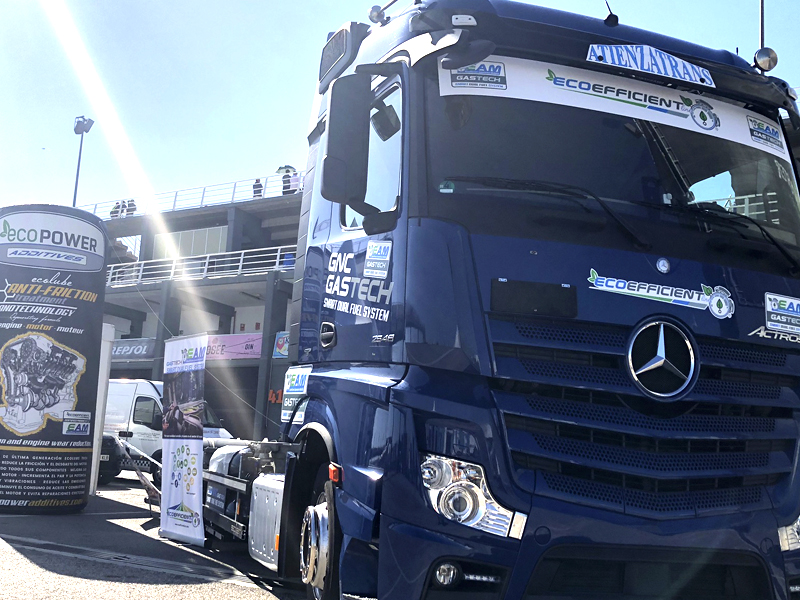 La línea Ecoefficient Line aprovechó la Gran Carrera de Camiones de Valencia celebrada en el Circuito Ricardo Tormo los días 11 y 12 de mayo para mostrar al público allí presente su proyecto de implantación de sistemas para la dualización en combustibles alternativos basados en gas en un Mercedes-Benz de Atienzatrans. Gracias a una tecnología única, permite aumentar de un modo significativo la autonomía del vehículo generando un ahorro económico en combustible considerable al lograr una reducción de los costes operativos y colaborando en la reducción de las emisiones contaminantes.